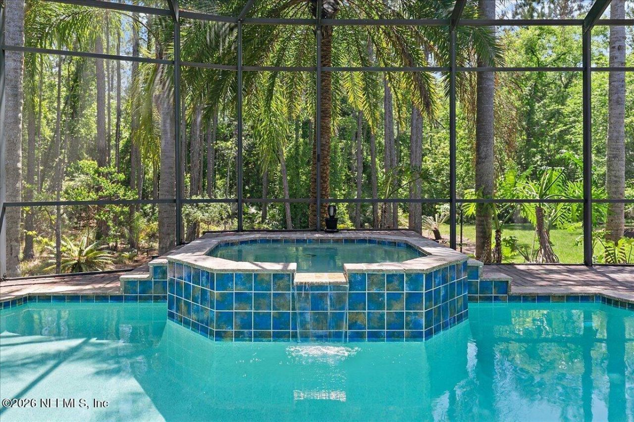 This sprawling executive estate in the South Hampton Golf Community is meticulously cared for and ready for a new owner. The highlight is an oversized outdoor oasis, which includes a heated/solar saltwater pool & spa, grilling kitchen, screen and a gorgeous view of palm trees and private preserve. The exterior is thoughtfully updated with crisp white exterior and black accents. High ceilings and oversized windows brighten the open-concept living space. In the kitchen, stainless appliances with new gas cooktop and oven, soft-close cabinets recently painted white, and a walk-in pantry make entertaining a joy. Four bedrooms and three full baths are on the main floor, while the upstairs includes a fifth bedroom/bonus area with full bath and an infrared sauna that conveys. The primary suite overlooks the pool with a sitting area. The primary bath is spa-like with soaking tub, walk-in shower, and two closets. Storage is generous, with all bedrooms having walk-in closets. Some other notable features: gas fireplace surrounded by built-in shelving, separate office with 8-foot doors, new tankless water heater, water filtration system. Roof and HVAC 2018. Home has been pre-inspected with an updated termite bond in place to transfer to the new owner. South Hampton neighborhood is a NO CCD community with a low HOA. It has more than 700 homes and has amazing amenities, including a community center, pool, tennis courts, basketball courts, a volleyball court, and a soccer/multi-purpose field. It is centered around a public golf course and multiple lakes designed by former PGA Tour player, Mark McCumber, in 1999 as a player friendly design that still offers an excellent challenge to the more experienced golfer. South Hampton is convenient to shopping, businesses, restaurants, Durbin Park, Town Center, historic St. Augustine, Jacksonville Airport, and the beaches and rivers. St. Johns School System is A-rated! Pre-approved buyers welcome. Please come tour this spectacular home. It won't last long!